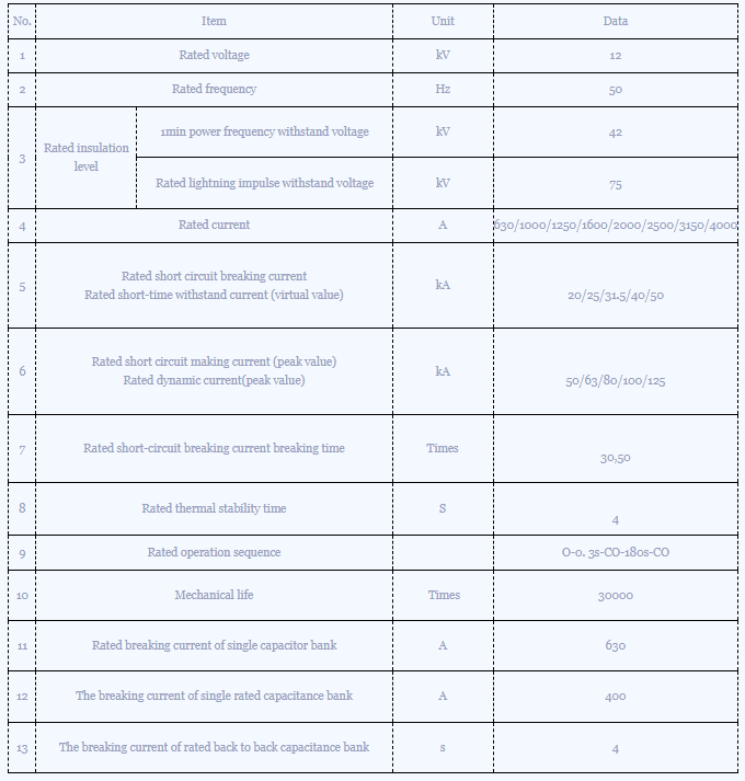 1. VCB Volledig type, belangrijkste technische specificaties, fase -afstand en kwantiteit