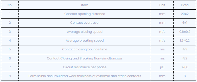 Na het aanpassen van de stroomonderbreker worden de mechanische karakteristieke parameters hieronder weergegeven: