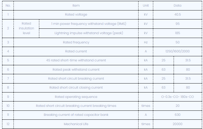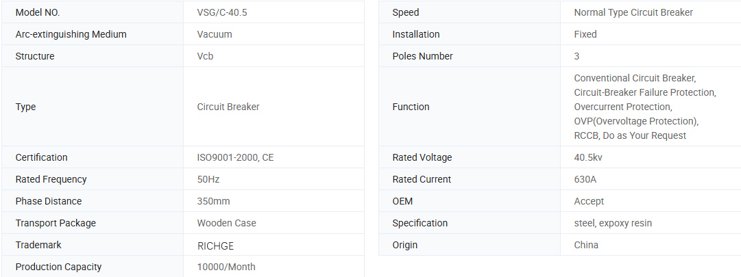 VSG-C/40.5 Type Zijkant Installatie Indoor Hoogspanning Vacuümstroomonderbreker gebruikt veer naar opslagergie. The operating mechanism can be operated by two ways, by manual and electromotive operation, The characteristics is according with GB1984-2003 High Voltage AC Circuit Breaker, JB3855-1996 3.6-4.5KV Indoor AC High Voltage AC Circuit Breaker and IEC standard 62271-100:200162271-100:2001 High Voltage AC Circuit Breaker