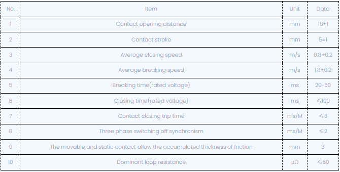 Na het aanpassen van de stroomonderbreker worden de mechanische karakteristieke parameters hieronder weergegeven