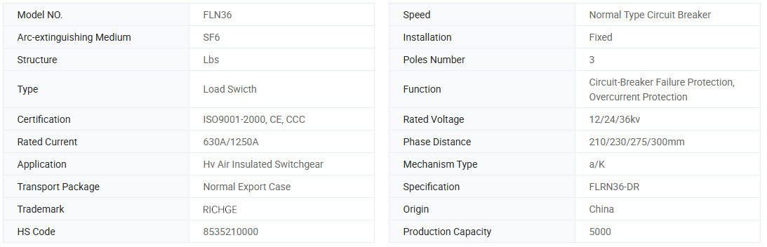 FLN36-12D/T630-20 Load Switch gebruikt SF6-gas als isolatie en boogd blikkende medium; heeft drie posities: sluiting, opening en aarding; Dynamische en statische contacten hebben een dubbele break-isolatie, hogere betrouwbaarheid; verlengde elektrische levensduur (E3 -niveau, 100 keer beoordeeld stroom); verlengde mechanische levensduur (M2 -niveau, 5000 keer); Nominale thermische stabiliteitsstroom (4s) 20Ka; Sluiten- en openingsposities zijn elektrisch of handmatig werking, en de aardingspositie is handmatig werking; De stroomvoorziening van de elektrische werking is beschikbaar in AC220V, AC110V, DC220V. DC110V, DC48V, DC24V; heeft elektrische en handmatige werking in elkaar grijpen en operatie Voedingsvoorziening Polariteit Revelverbindingsbeveiligingsfunctie;