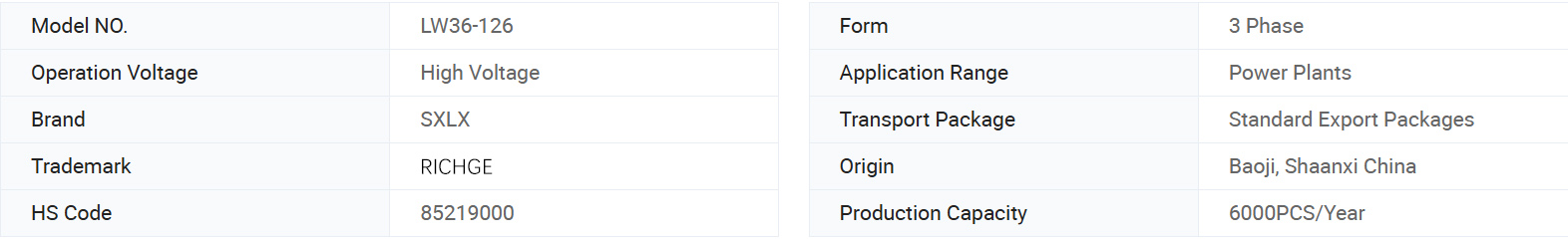 Dit product maakt gebruik van SF6 -gas als zowel de boeren- als het isolatiemedium. Het is uitgerust met de nieuwste zelfverbruikte boog-blussende technologie en beschikt over een nieuw mechanisme in de lente. De LW36-126/3150-40 biedt een lange elektrische levensduur, lage operatie-inspanning, lage ruis en hoge betrouwbaarheid, waardoor het de meest betrouwbare keuze is voor gebieden op hoge hoogte of 132kV stroomsystemen. Het kan ook geïmporteerde producten van hetzelfde type vervangen.