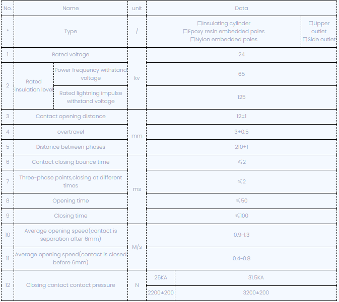 Het bedieningsmechanisme van VBI-24-zijkant met zijkant vacuümcircuitbeker wordt gebruikt veer tot opslagergie, die op twee manieren kan worden bediend, handmatig of elektrisch. De kenmerken zijn in overeenstemming met GB1984-89, JB3855-96<10kv Indoor High Voltage Vacuum Circuit Breaker General Technical Specifications>, Relevante bepalingen van IEC56 -standaard.