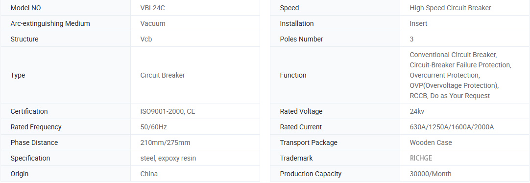 VBI-24 VCB meestal gemonteerd in schakelpaneel KYN28 en XGN. Het is van toepassing in gelegenheden met frequente werking, heeft functies van high-speed recloser, meerdere opening/sluiting, betrouwbare mechanische vergrendeling. Het heeft een vast type en terugtrekking. Het neemt het composiet geïsoleerde materiaal aan, er is geen vervuiling en explosie gevaar, het isolatieniveau is hoog.