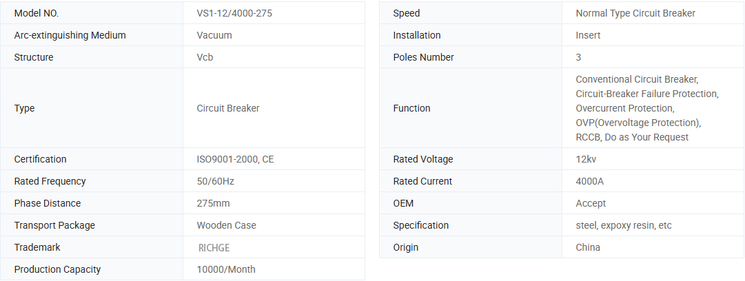 VS1-12 Type vacuümstroomonderbreker is een soort indoor hoogspanningsschakelaarapparaat dat wordt gebruikt in het AC driefasige voedingssysteem van frequentie 50Hz, nominale spanning 12KV als de bescherming en de besturingseenheid.