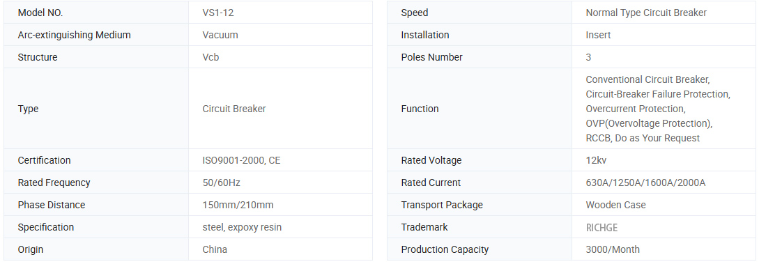 VS1 (Zn63a) -12Series van binnenvacuümbreker met een gemeenschappelijke geïsoleerde cilinder is driekwee A.C. 50 Hz binnenvermogensverdelingsapparatuur met de nominale spanning van 12KV. Het is gebruikt voor het beschermen van het regelen van de elektrische apparatuur op het gebied van industrie en mijnbouwbedrijf, energiecentrales en substation. Dit type vacuümstroomonderbreker voldoet aan de nationale normen en de bepaling van de IEC-standaard, de capaciteit bereikt de kwaliteit van M2-E2-C2.
