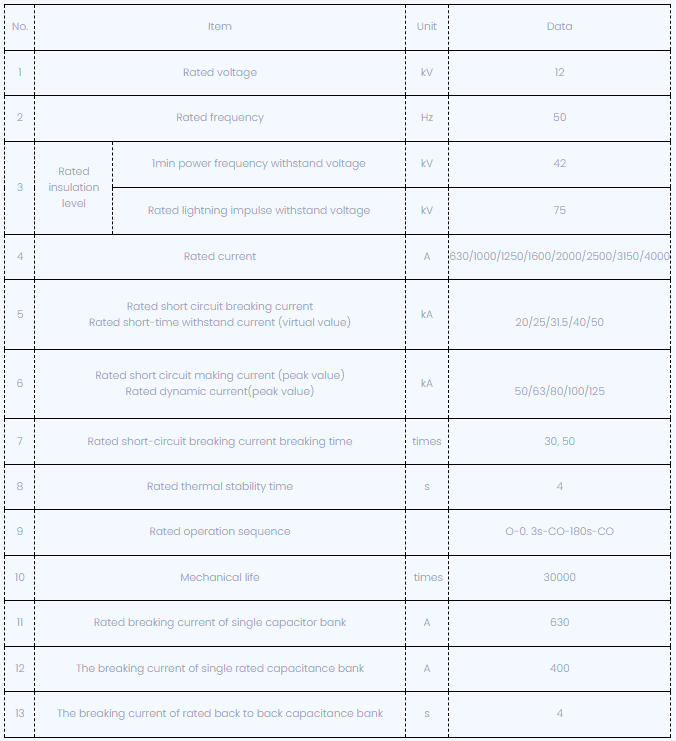 VSG-12 handcart type vacuüm stroomonderbreker technische parameter