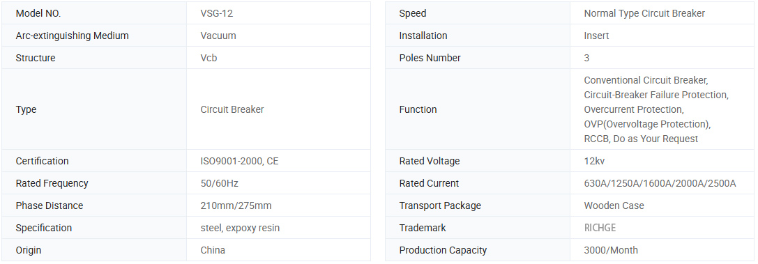 VSG-12 Type Indoor Hoogspanning Vacuümstroomonderbreker gebruikt veer tot opslagergie. The operating mechanism can be operated by two ways, by manual and electromotive operation, The characteristics is according with GB1984-2003 High Voltage AC Circuit Breaker, JB3855-1996 3.6-4.5KV Indoor AC High Voltage AC Circuit Breaker and IEC standard 62271-100:200162271-100:2001 High Voltage AC Circuit Breaker