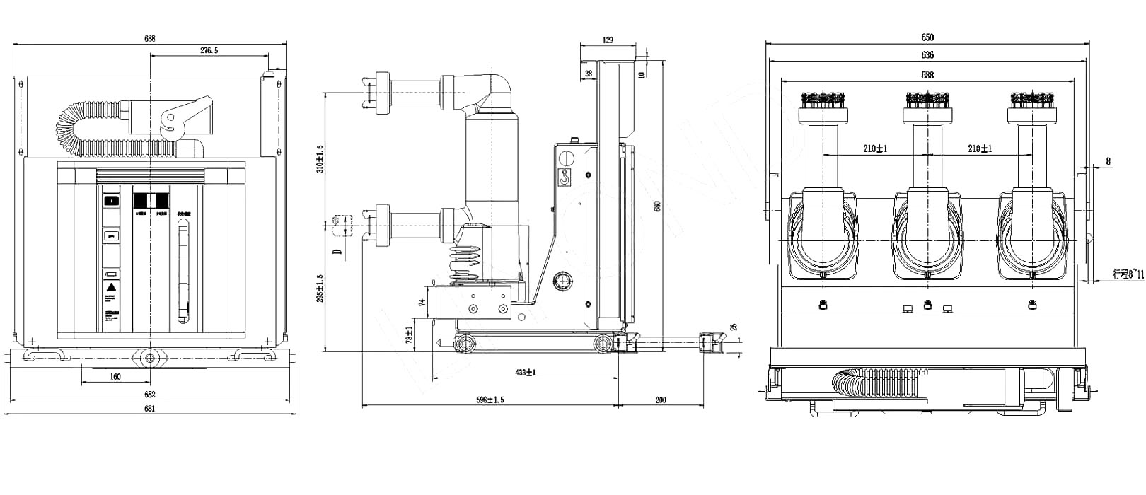 Afmetingen van VSG-12/2000A HandCart Type Vacuümstroomonderbreker met vaste pool