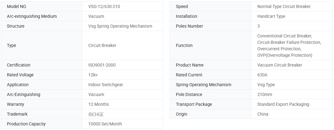 VSG-12 indoor hoogspanningsvacuümstroomonderbreker (Abbr.: Stroomonderbreker) is drie-fys.c. Dit product is in overeenstemming met GB1984-2003 (High Voltage A.C. stroomonderbreker), JB3855-1996 (3.6-4.5KV Indoor A.C. High Voltage Circuit Breaker), DL403-2000 (Technische omstandigheden voor bestelling van 12-40.5KV High Voltage Breaker) en IEC Standaard 62271-100: 2001 (High Volage A.C. Circuit. Circuit. Circuit. Circuit. Circuit. Circuit. breker). Het kan worden gebruikt voor het beschermen en regelen van apparatuur in de rasterapparatuur en het dynamische ontwerp van industriële en mijnbouwbedrijf. Het is geschikt voor het schakelen van belasting en frequente werking met verschillende eigenschappen en met de mogelijkheid van vele malen bewerkingen van het breken van kortsluitstroom.